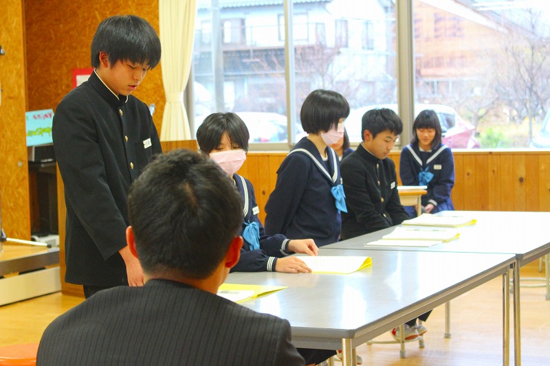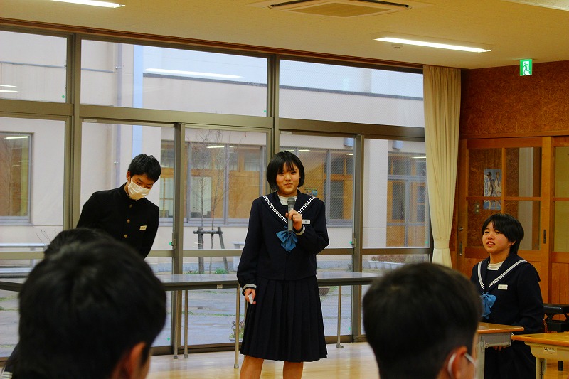 次に3年生出村さんから「受験勉強で悩んでいること」の意見発表があり