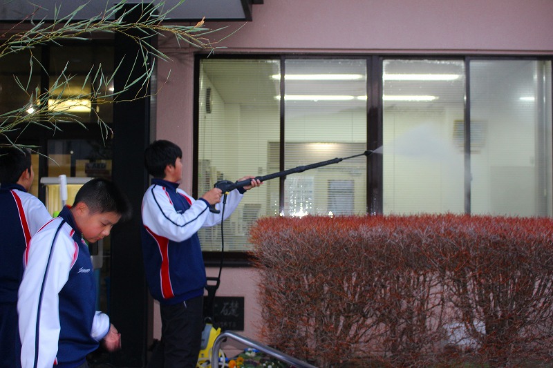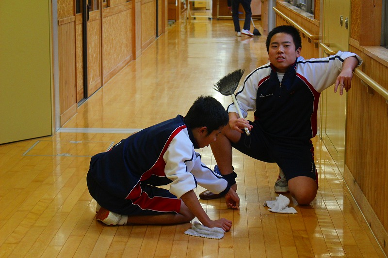 行いました。校舎内がとてもきれいになりました。特にワックスがけ