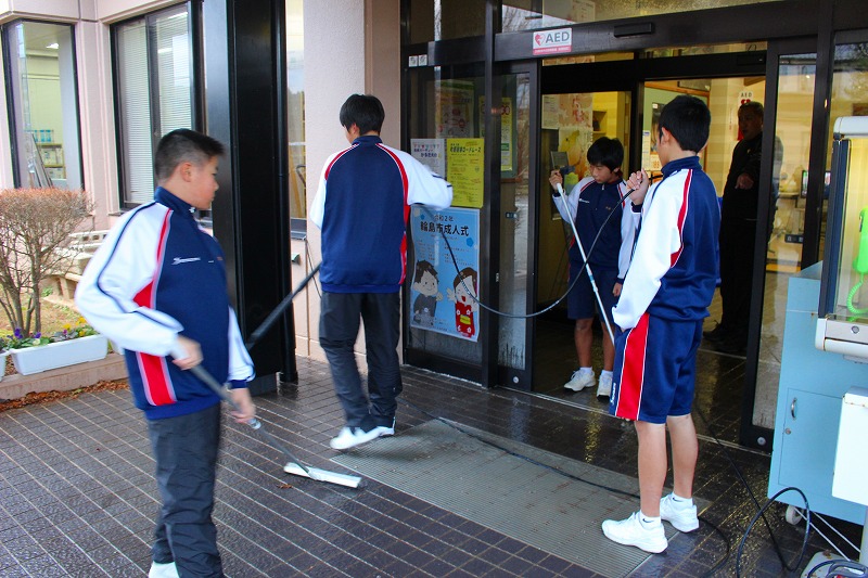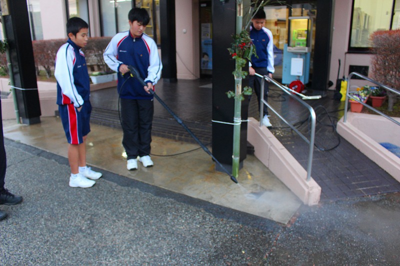 12月23日(月)放課後、全校生徒でよごれ落としとワックスがけを