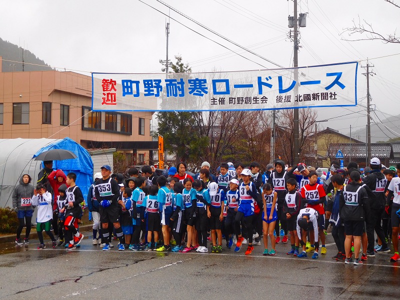 元日、冷たい雨・あられの中、第41回町野耐寒れロードレースが行われ