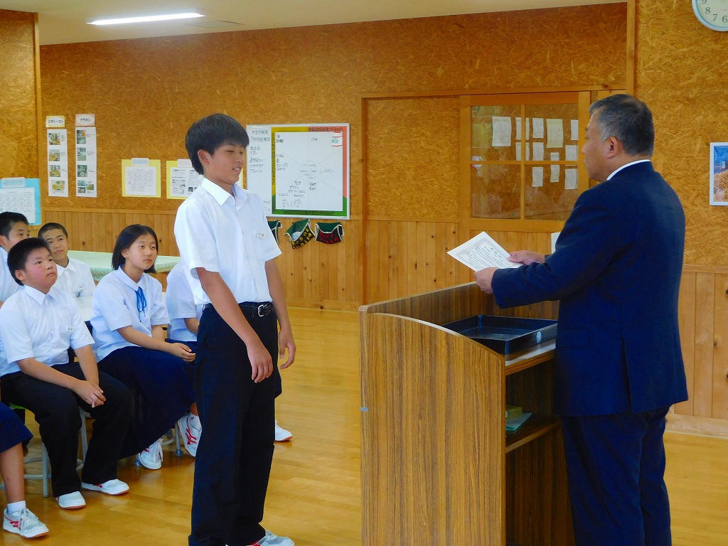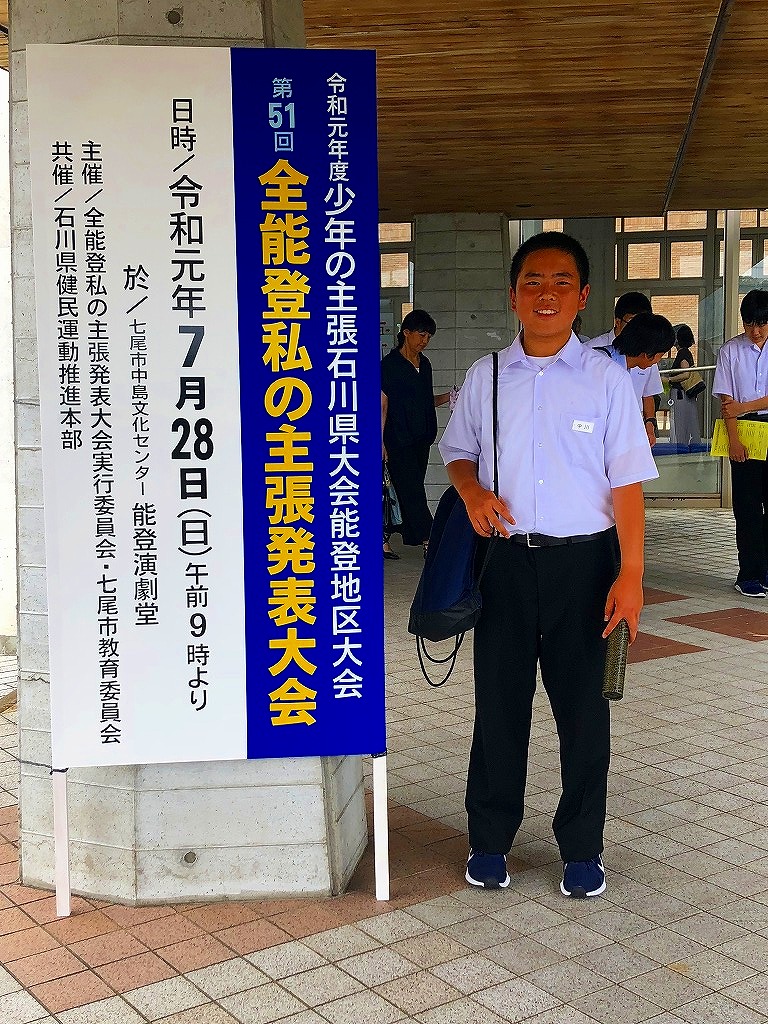 私の主張発表大会があり、本校からは輪島市を代表して、1年中川君