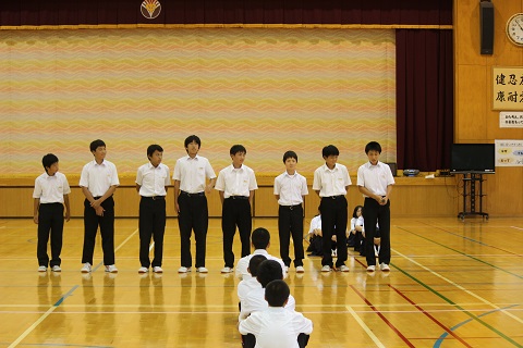 選手激励会では、野球部、バレー部、文化部の3年生が中心となり迫力ある応援をしてくれました。ソフトテニス部は、自分の全力を出して、最後まであきらめずプレーをしてきてください。健闘を祈っています!
