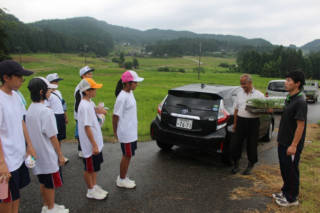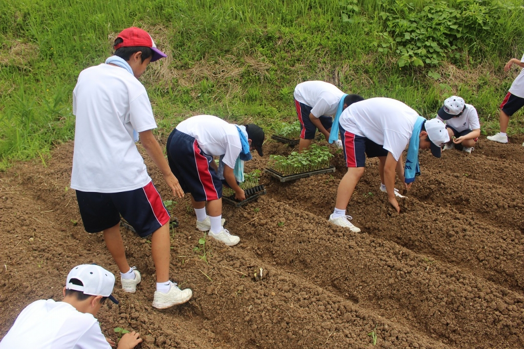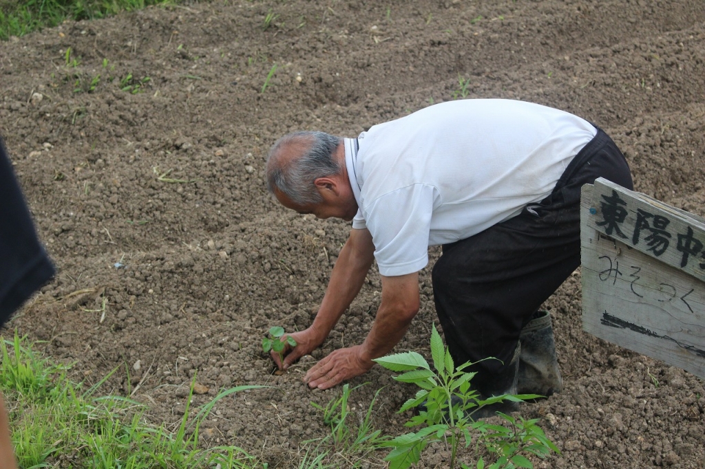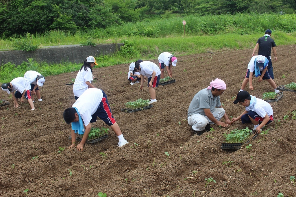 協力を得て苗植えを行いました。11月に収穫を行い、赤飯を作ります。