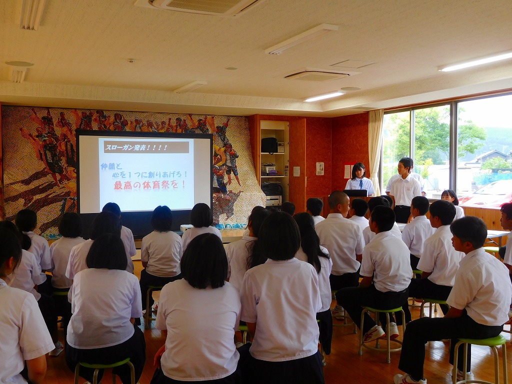 ありました。スローガン、種目、赤団・青団のメンバーの発表が行われ、