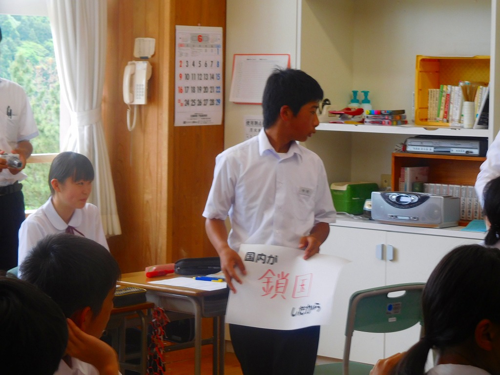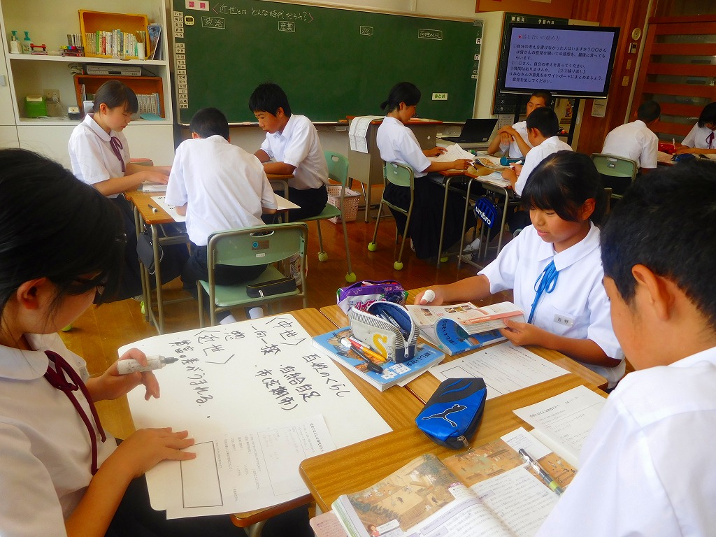 生徒たちは、中世と近世を比較してから、「考え、磨き合い、表現する」