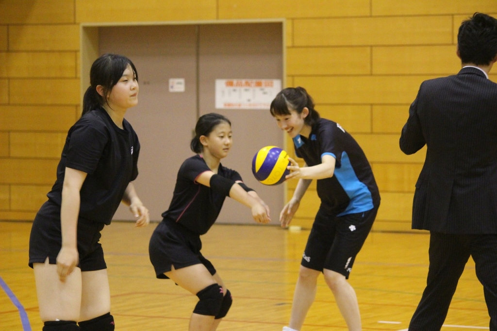 本校バレー部山本主将お「苦手なレシーブも細かいところを助言して