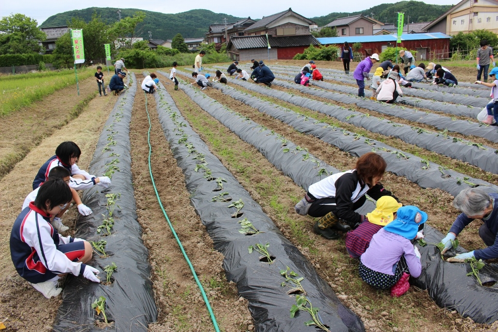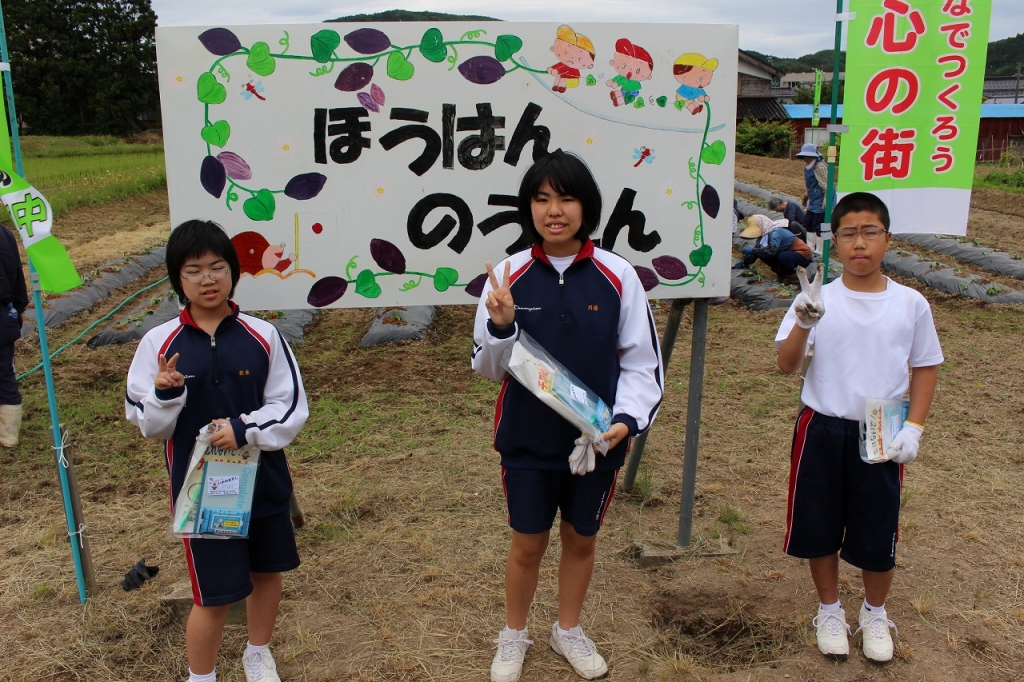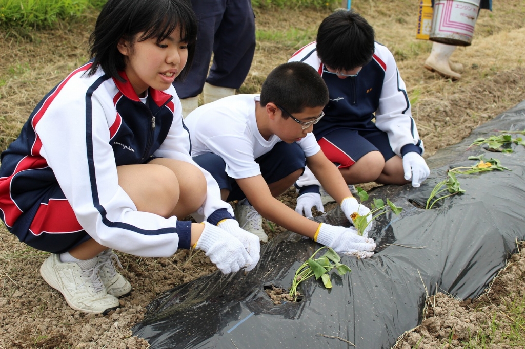 文化部が参加しました。JA町野裏にある畑にさつまいもの苗とヒマ