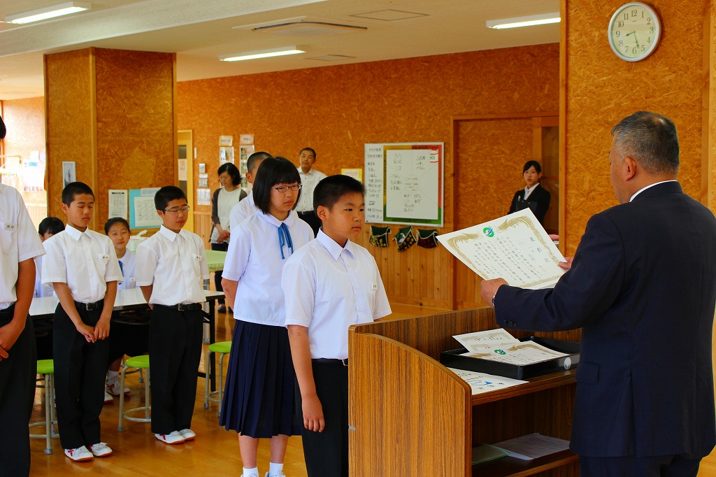 表彰を行いました。今日はどの学年も非常によく頑張り、表彰者が多数