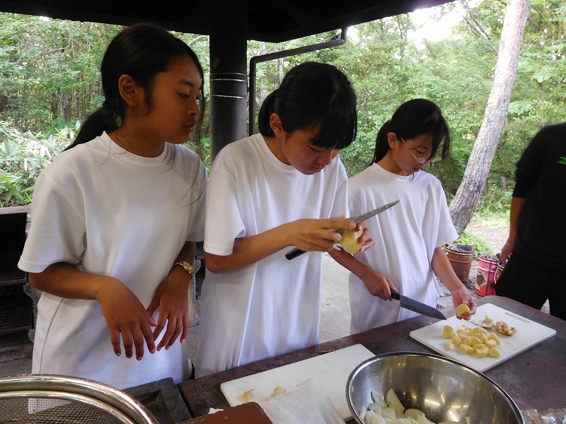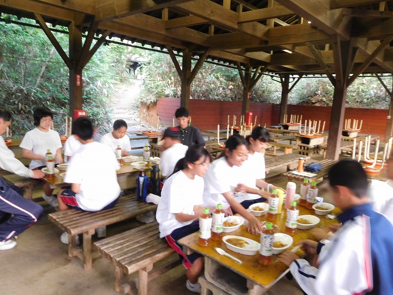 宿泊体験学習を行いました。1日目はオリエンテーリングや野外炊飯、