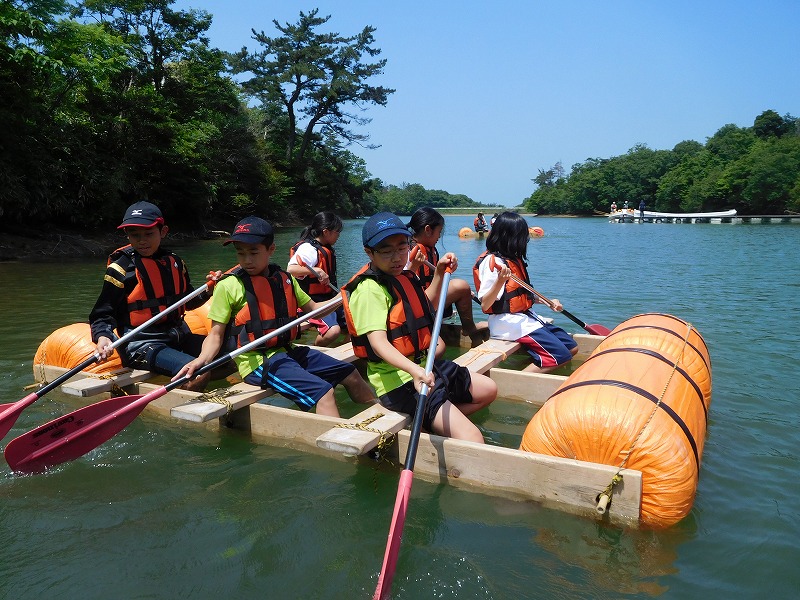 2日目はいかだ体験等を通して楽しみながら交流を深めました。