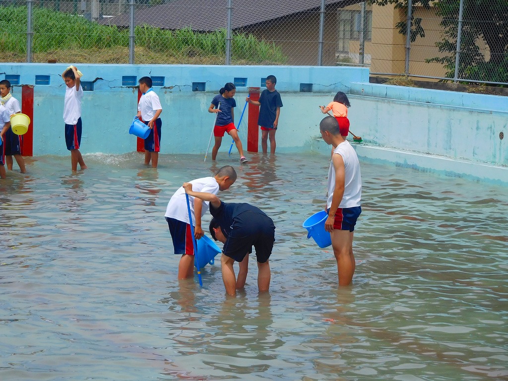 2019年6月24日 08時16分1・2年生で、小学校にあるプールそうじを行いました。