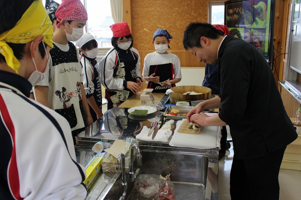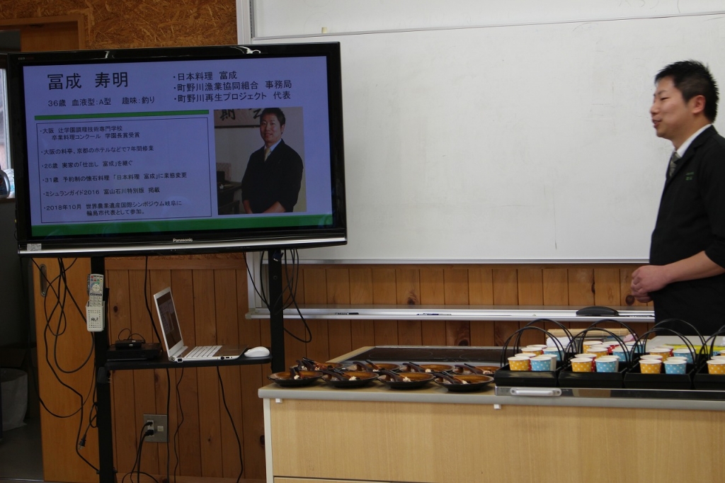 日本料理店「富成」を営む料理人の冨成寿明さんに来ていただき、1年生に