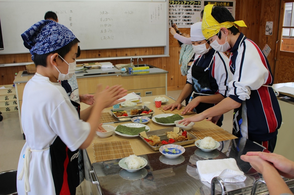 た。後半は、ささにしき米を使い、巻き寿司、いなり寿司など寿司を一緒に