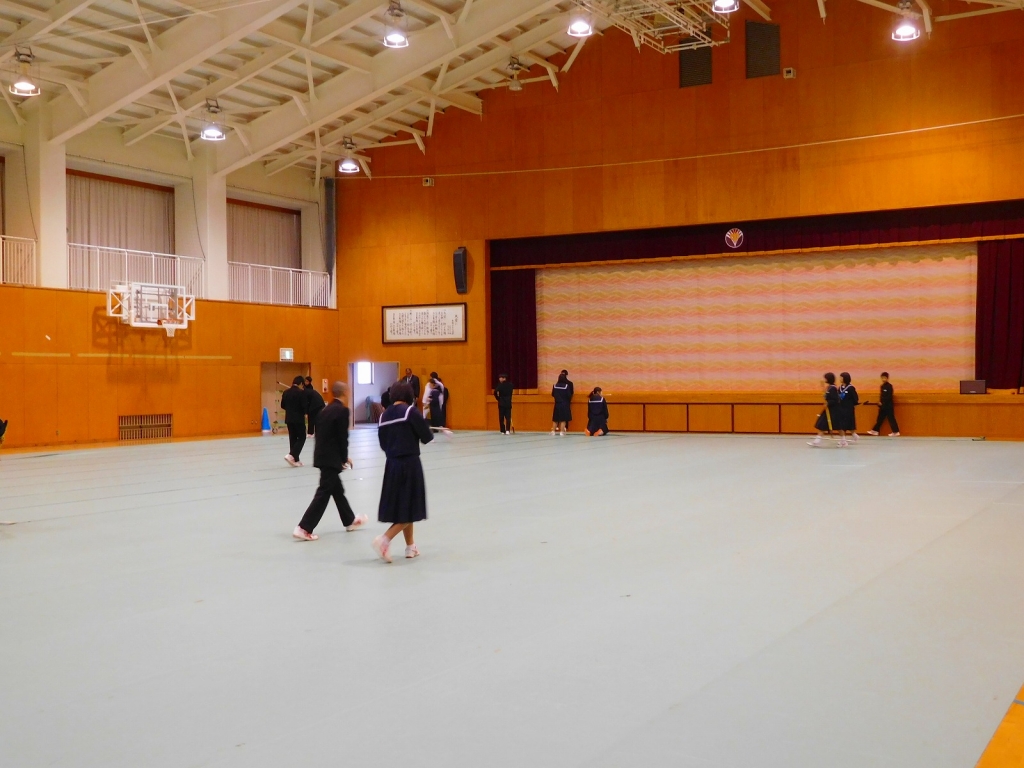 1・2年生は、全員で卒業式準備で体育館にシートを敷きました。