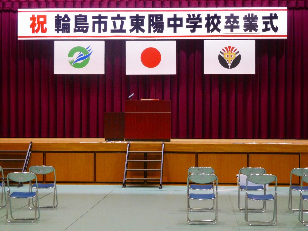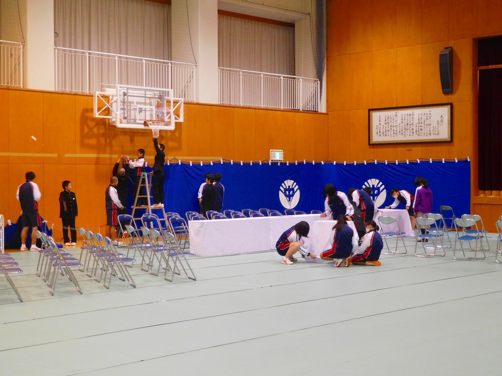 卒業式準備も幔幕(まんまく)等を張り、準備万端です。