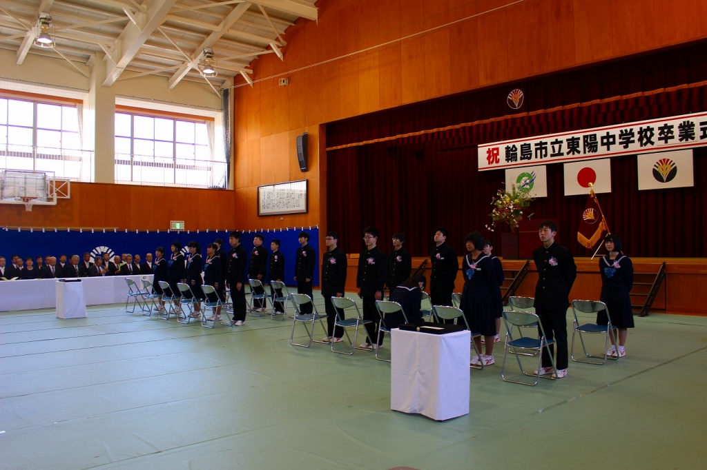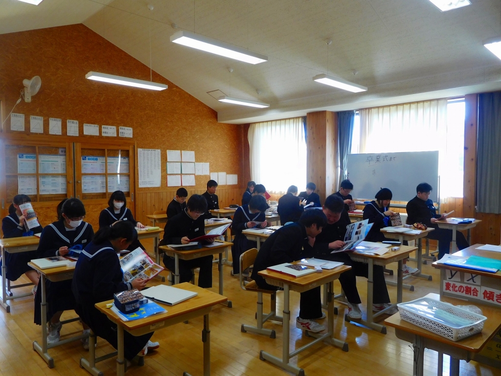 入試も終わり、安堵した表情の3年生を迎え、明日の卒業式を行いました。