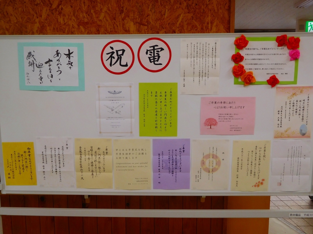 1・2年生が3年生に励ましのメッセージを書いて玄関に掲示してくれました。