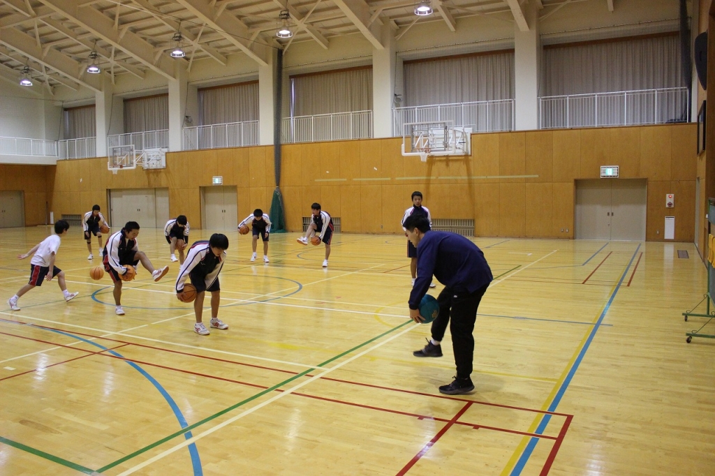 の授業に、輪島市在住の天野和剛さんにバスケットボールの講師を務めてい