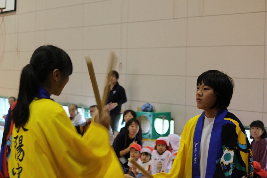 ため、全校生徒で「よさこい」を披露させていただきました。