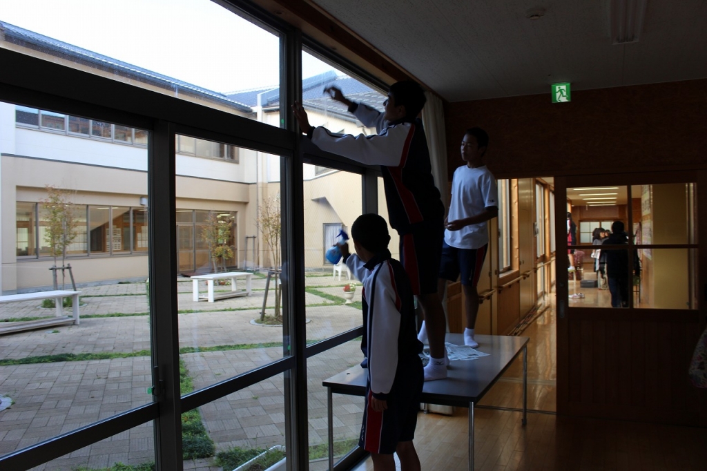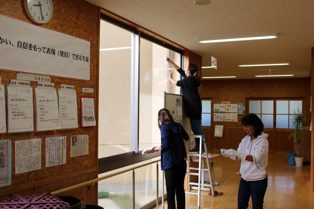 窓ふき、草刈等の奉仕作業をしていただきました。学校が大変きれいに