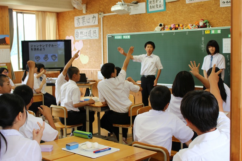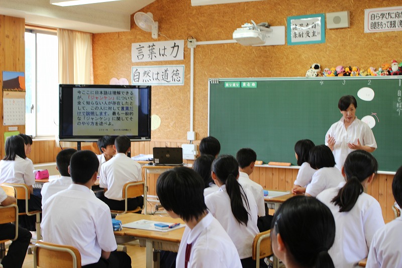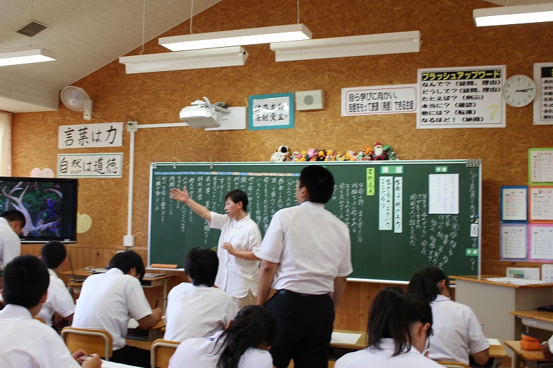 6月21日(木)、門前中・東陽中の2年生が合同授業(国語・英語)を
