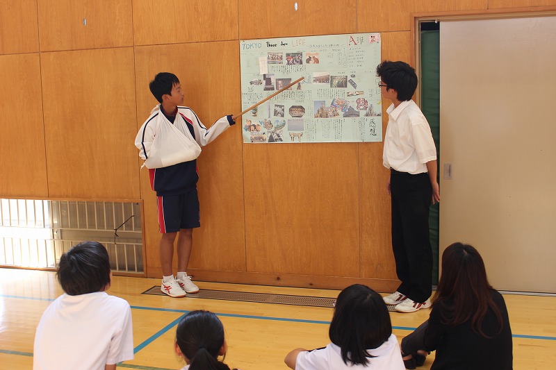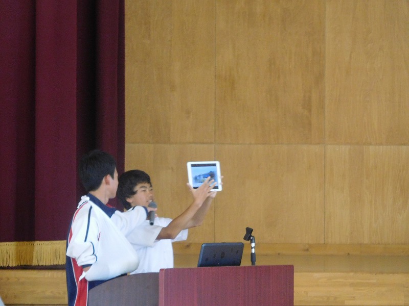 パワーポイントやポスターを用いて、1・2年生にプレゼンをしました。