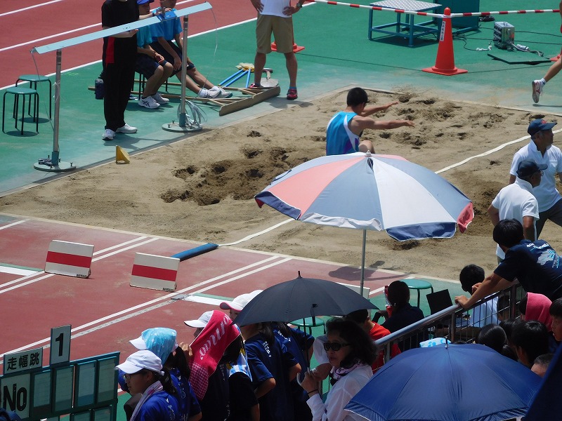 県体陸上が行われました。2日間とも気温30℃を超える暑い日と