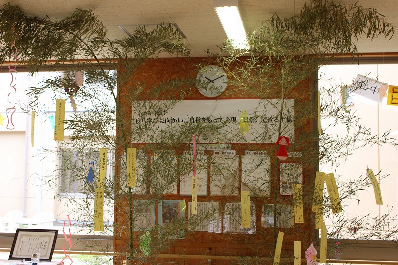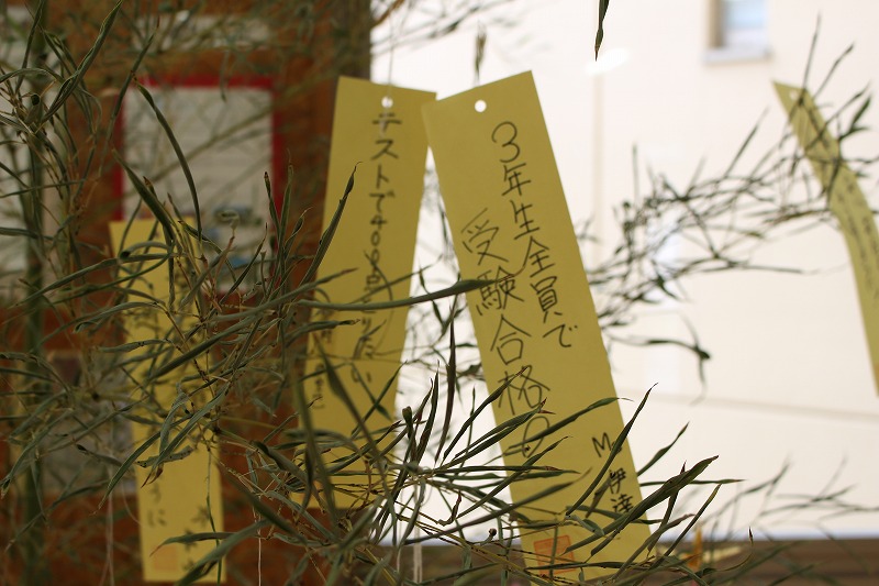 生徒玄関に、七夕飾りを掲示しました。