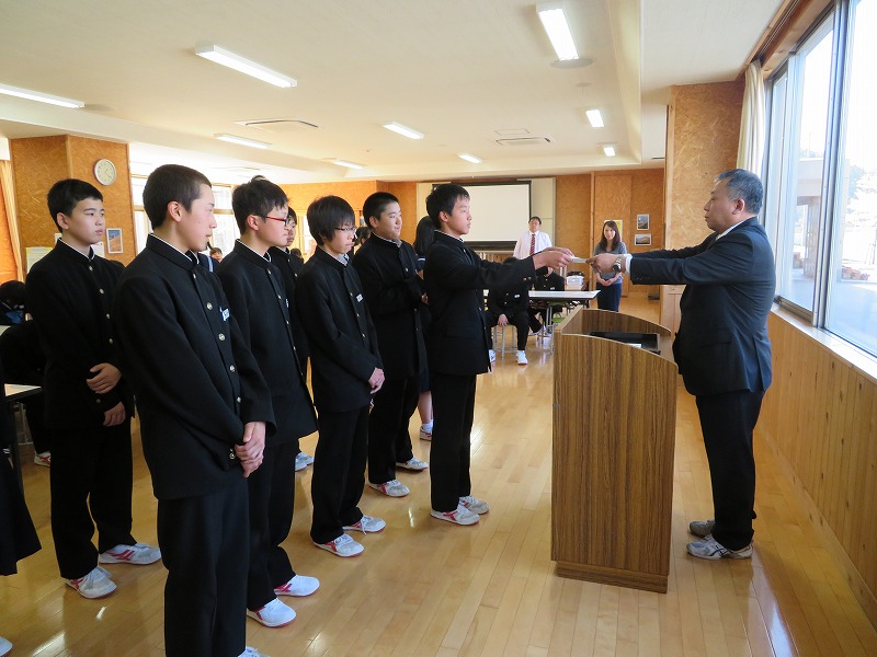 前期生徒会役員と学級役員の任命式が行われました。