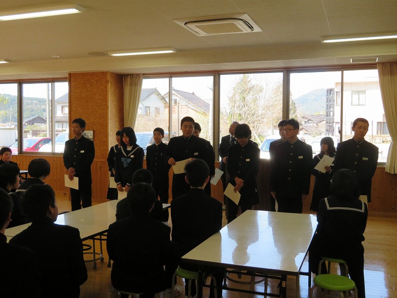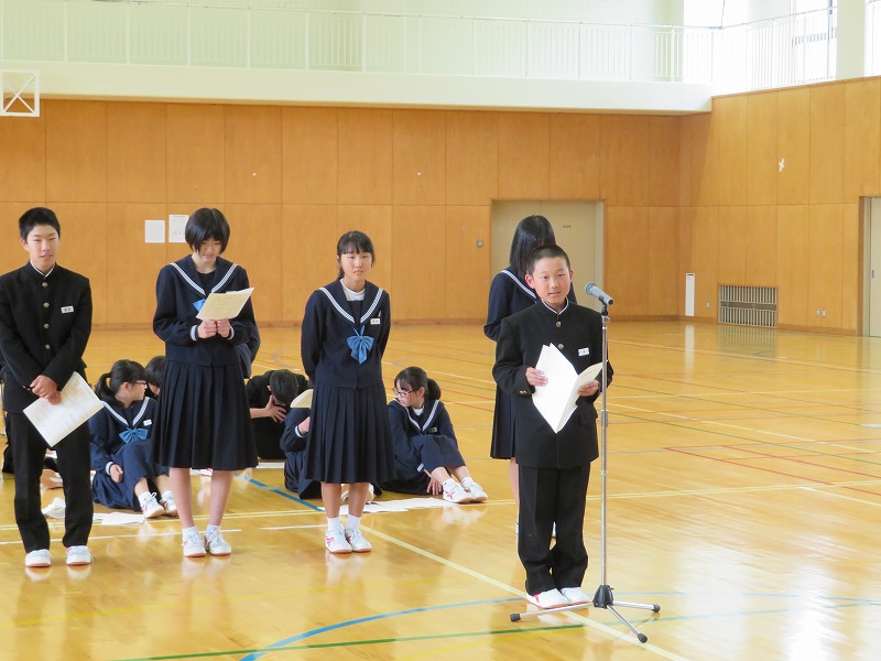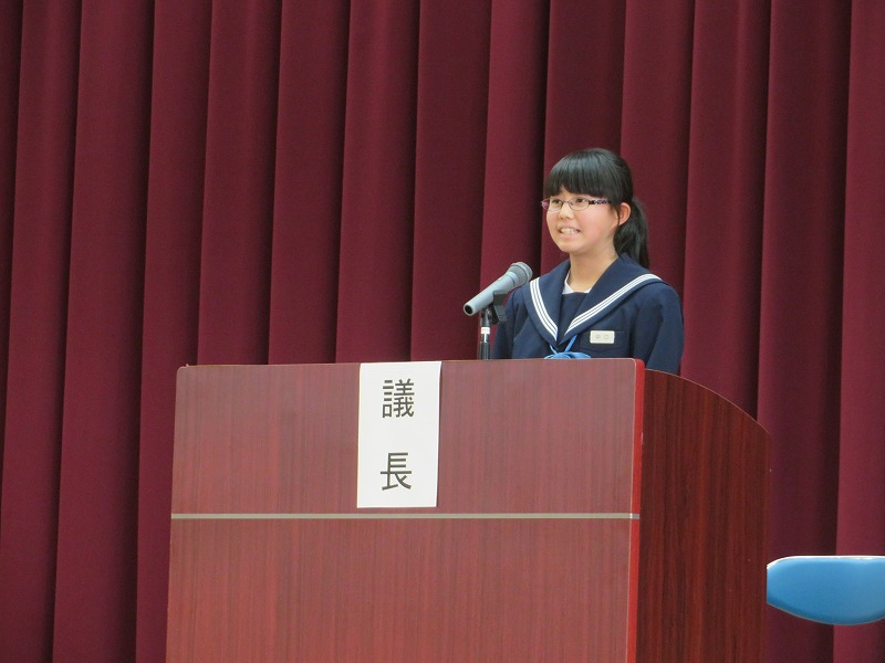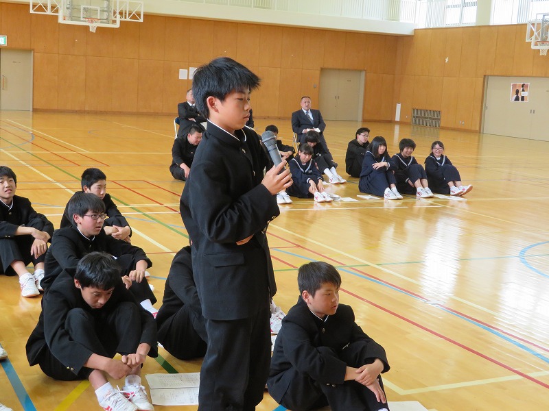 意見発表では、3年生の中口さんが修学旅行で学んだことを