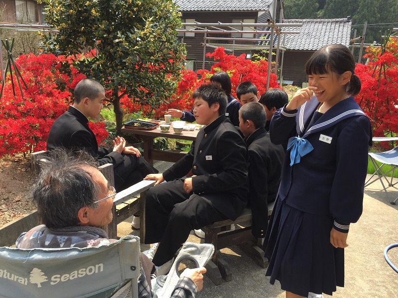 1日(火)に一年生が町野の広江先生宅のきりしまツツジガーデンを