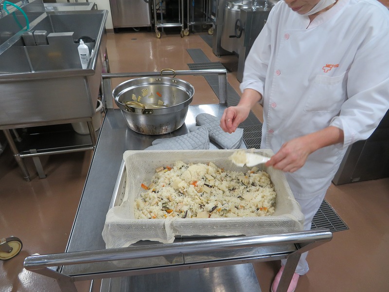 今月、山菜おこわを給食に出す予定でいます。