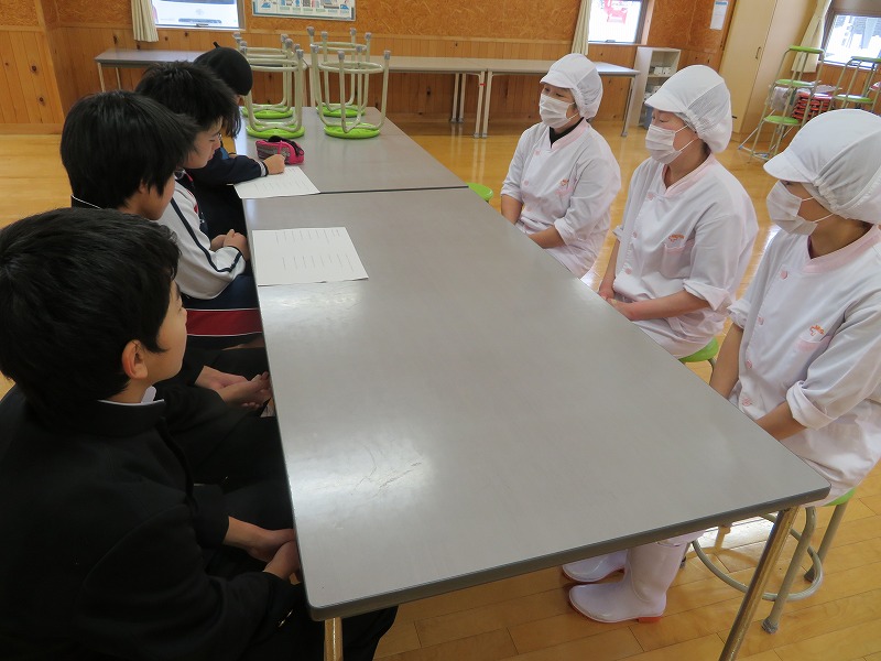 給食・情報委員会の生徒が、調理員さんに給食についての