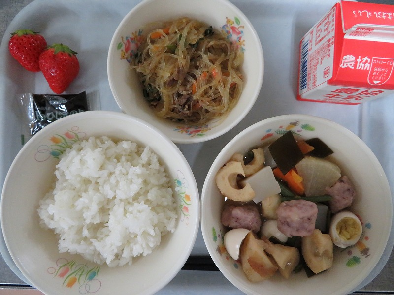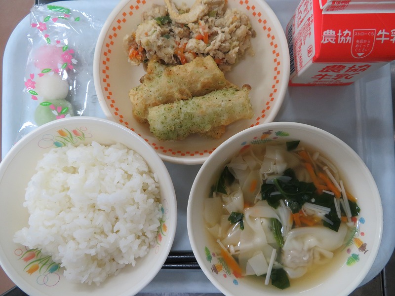 2年生だけの給食でした。少しさみしい給食時間でしたが、2年生は元気いっぱいで
