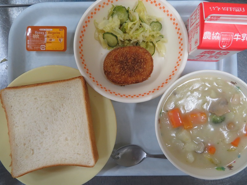 今日は、野菜がたっぷり入ったクリームシチューです。