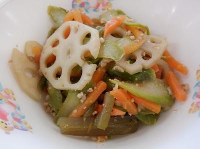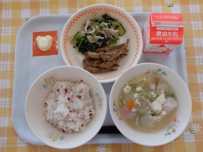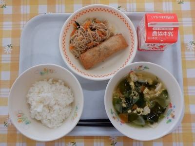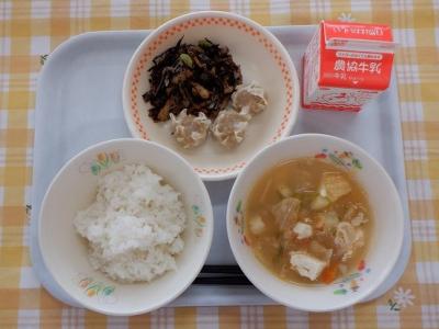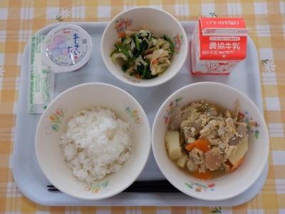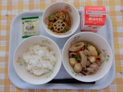 今日は『歯と口の健康週間』にちなんで、れんこんやたけのこ、茎わかめなど、噛みごたえのある食材をたくさん使った「かみかみ給食」です。