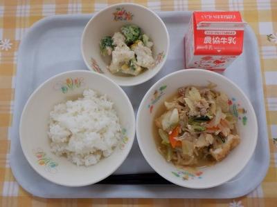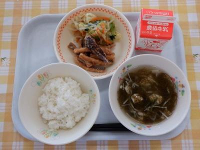 今日は、お隣の能登町小木で水揚げされた「するめいか」、宇出津で採れた「もずく」を使った給食です。