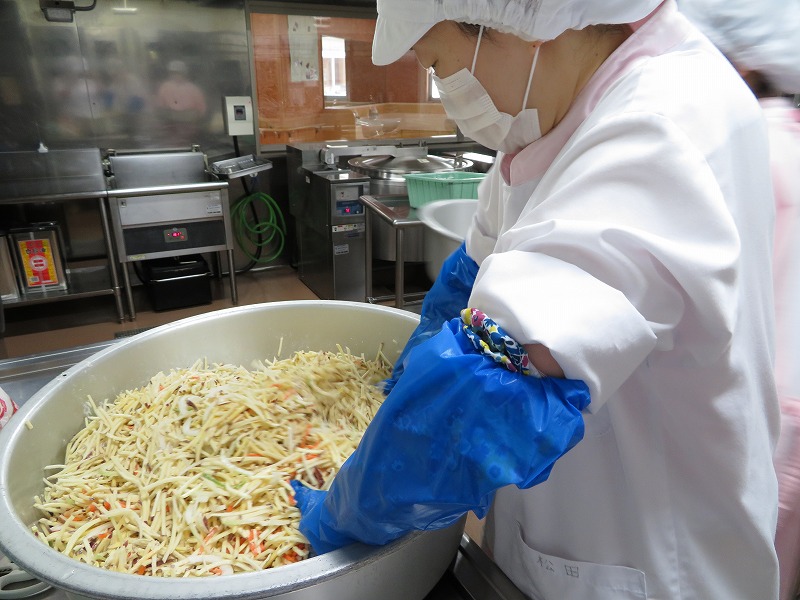 そうめんも当番が配りやすいように、調理員さんが一人分ずつ丸めてくれました。