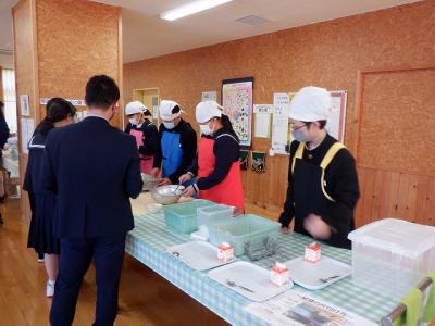 初日は2・3年生のみの給食です。1年生は、10日(月)から給食が始まります。