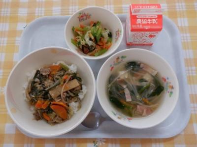 「スタミナ丼」は、豚肉やニラ、もやしなどの具材を炒め、すりおろした玉ねぎやリンゴ、ニンニクなどを合わせた手作りのタレで味つけをしました。