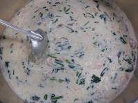 小さめに切ったカニカマや鶏肉、ほうれん草、たまねぎなどを炒め、ベシャメルソースでまとめてタネを作りました。