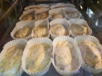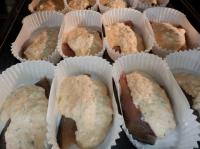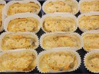 カップに詰めたタネに、パン粉と粉チーズを合わせたものをかけ、焼き色がついたら出来上がりです。