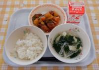 カレー、クリーム煮と味の濃い給食が続いたので、今日はあっさりと和風な献立にしました。