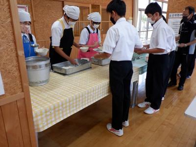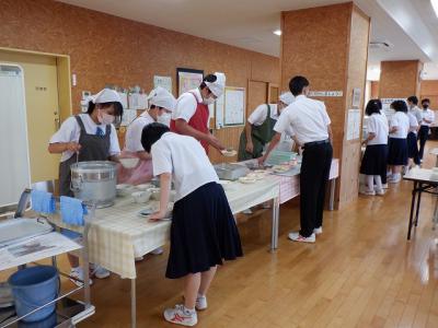 生徒たちも久しぶりの給食当番でしたが、みんなテキパキと動いていました。