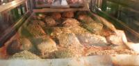 醤油だれに漬け込んだ鯖に白ごまをたっぷりと振り、スチコンで焼き上げました。