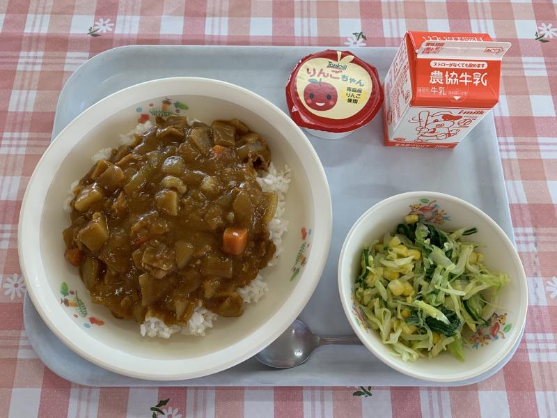 今日は、カレーライスでした。人気メニューなので、みんな早く食べ終わっていました。