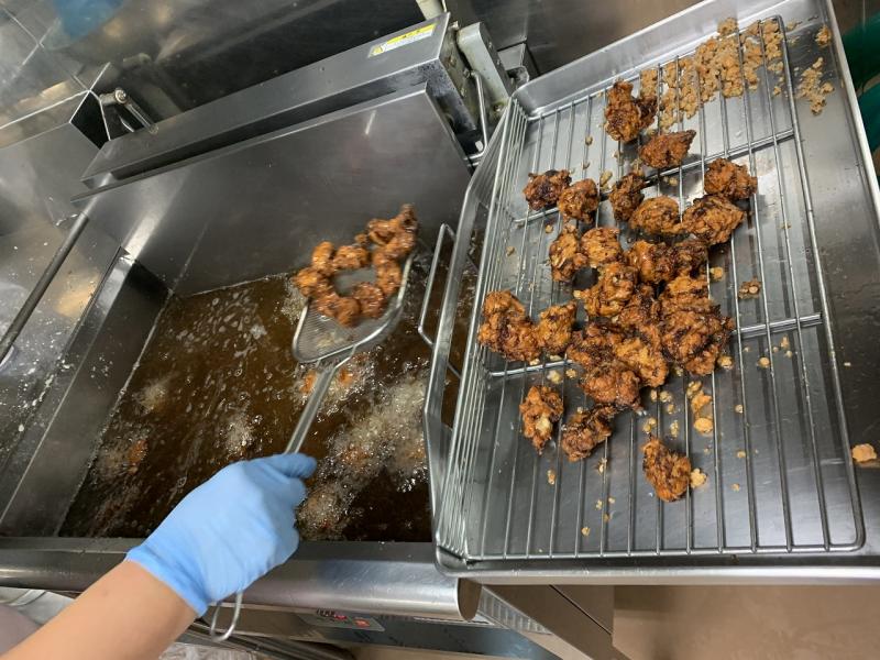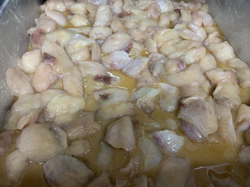 今日は、輪島ふぐの日です。今日も輪島市の農林水産課より、輪島ふぐを無料でいただきました。今年度は、7回もいただくことができました。おいしい輪島ふぐの提供も今年度は今日で最後でした。本当にありがとうございました。今日は、金沢学院大学の学生が考えたレシピを参考に、竜田揚げを作りました。いつも使用する、酒やしょうゆ以外に、塩麹や柚子胡椒、砂糖やにんにくなどたくさんの調味料で下味を付けたおかげで、深みのある味になっていました。とてもおいしかったです。