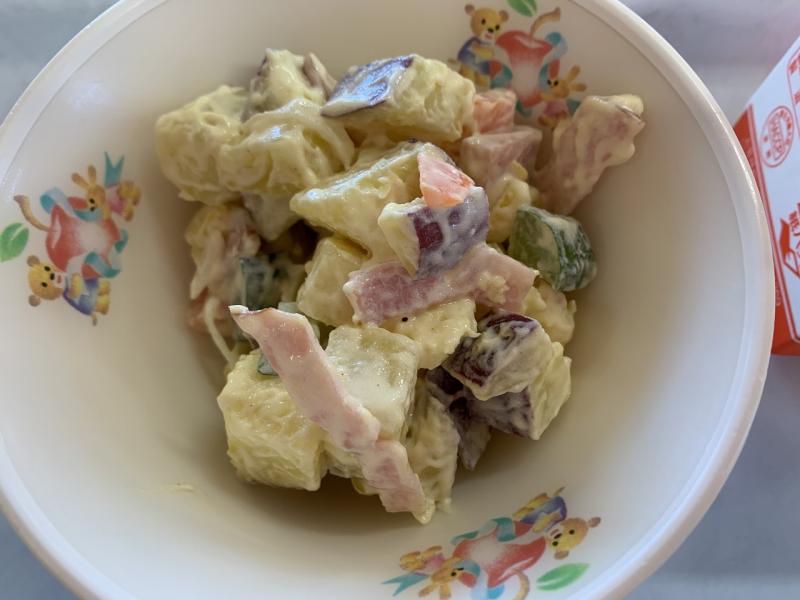 今日の「さつまいもサラダ」のさつまいもは、石川県産でした。ホクホクと甘く、とてもおいしいさつまいもでした。サラダももちろん、おいしかったです。