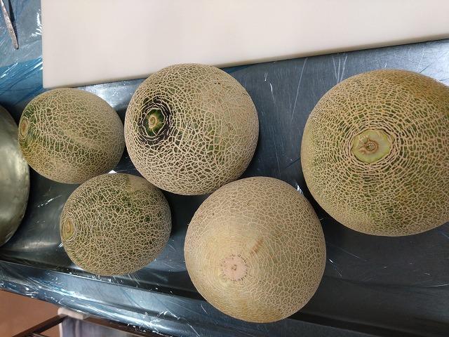 茨城県産メロンを頂きました。茨城県は、全国一のメロン生産量を誇る一大産地です。本日は5玉を小・中学校でカットして頂きました。赤肉・青肉メロンを中学生に青肉メロンを小学生に提供しました。もう一回提供できるので、次回は、小学生に赤肉・青肉メロンを提供する予定です。今年初めてのメロンは、香りが高くとても甘かったです。ご支援、ありがとうございます。