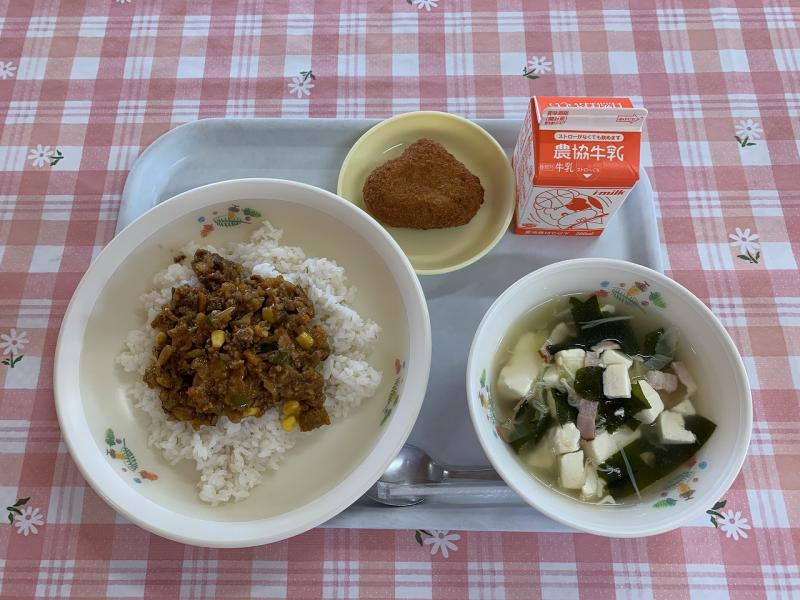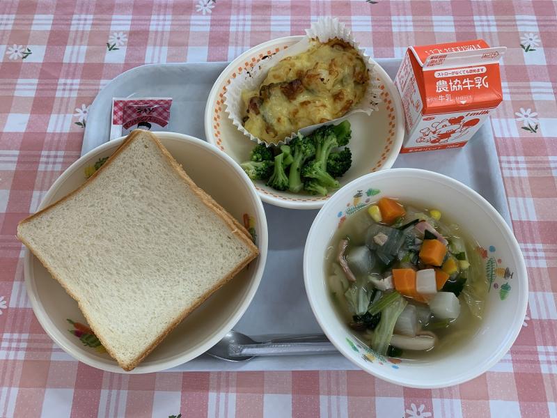 今日の食パンは2枚でした。合わせると、いつもの1枚のものと同じ大きさですが、みんな気分的に多く感じたようで、食べ終わるのが遅めでした。でも、みんな完食してくれました。